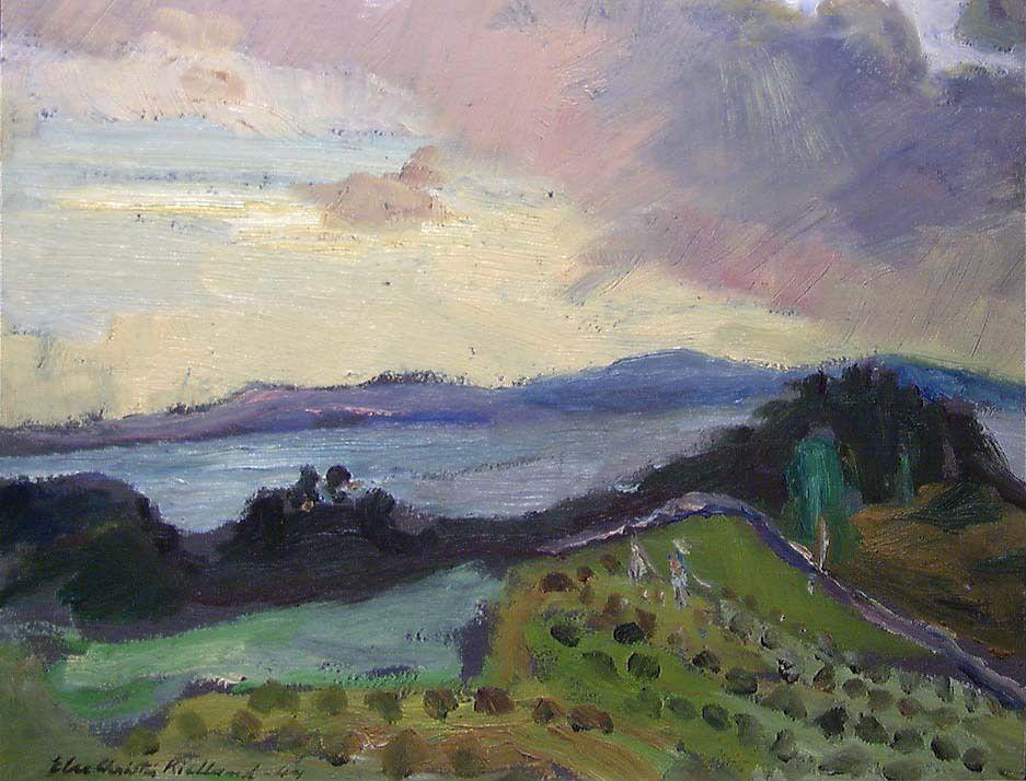 llustration du texte : ©Else Christie Kielland, "Ciel de soirée à Valevåg" 1947, huile sur panneau en bois, 37,5 x 29,5 cm, ©Nasjonalmuseet for kunst arkitektur og design, Oslo.