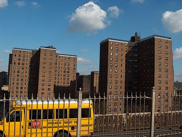 Un soleil perché dans le ciel d’un dessin d’enfant. Une perspective approximative où le toit des buildings de l’ouest de la rue tombe sur le toit des buildings de l’est de la rue. L’énorme tache jaune lance des flammes jaunes sur la chaussée où file le bus scolaire. Derrière ses vitres, des têtes enfantines avec des yeux grands ouverts et des bouches grimaçantes. Certains ont posé leurs mains bien à plat sur le verre securit. On pourrait croire qu’ils envoient des messages de détresse, mais c’est seulement pour faire les malins. Au fond du bus, il y a une zone réservée aux choses pesantes. Pour l’heure, la place est occupée par la présence et le silence pesants d’Emma F. qui a perdu sa mère il y a quatre-vingt-sept nuits et de la poussière. Emma F. ne pleure pas. Elle ne dit rien. Elle regarde l’hématome sur son genou gauche. C’est un bleu qu’elle s’est fait avant. Depuis que sa mère est morte, elle range tout dans deux catégories : avant et après. Tout ce qui vient après ne compte pas tellement. Elle donne des petits coups sur le bleu avec la boucle en fer de son sac à dos pour que l’avant ne disparaisse pas. Si peu qu’on tende l’oreille, mais personne ne le fait parce que c’est impossible de tendre l’oreille, on entendrait le fer taper contre l’os. À cause du soleil, c’est l’été. Les bus scolaires sont à présent des bus tout-court et chaque jour ils déposent des cohortes de gamins devant le Met, le MOMA, le Guggenheim…Enfin bref, devant tous les lieux où l’on dispense de la nourriture à cervelle. Pendant que les enfants comptent leur argent de poche devant les boutiques de cadeaux, et dévalent les couloirs et les allées en hurlant, les chauffeurs, souvent noirs, somnolent sur la banquette du fond, la plus large, et dans leurs rêves, ils traversent l’océan. Toutefois, arrivés sur le continent africain, ils ne reconnaissent rien et ne sont reconnus par personne, aussi ils font demi-tour et se réveillent chiffons et encore plus tristes qu’ils ne l’étaient avant de s’endormir. Le bus d’Emma F. a, pour sa part, une préférence marquée pour le Musée d’Histoire Naturelle, parce que les gosses oublient toujours un dinosaure sur un siège et que les objets perdus c’est pour bibi. C’est donc là qu’il se rend tous les jours que durent les vacances. Aujourd’hui, à la fin de la visite, les enfants installent Bernard Plotte sur un strapontin du bus. Un passager exceptionnel, volé au musée. Après quoi, ils s’assoient à leur tour et plus un mot ne sort de leur bouche, plus un mouvement de leur corps. Emma F. laisse son genou en paix parce que l’institutrice lui a longuement parlé sous le mammouth. Bernard Plotte n’est pas rassuré. Il regrette de s’être emporté devant le tamarin. « Bon sang, il y a bien quelques secondes de silence dans cette ville. Mais qui, qui me les donnera ? Qui ? » A peine le I de qui dilué dans l’espace, qu’une meute de mômes le poussait dans le bus. « Nous, on connaît une réserve naturelle de silence. Parole de scout. Juré, craché, croix de machin, croix de truc, si je mens, t’iras carrément en enfer… » Un quart d’heure plus tard, le bus s’arrête devant un terrain vague et la portière gémit en s’ouvrant. Quarante index se collent aux vitres. « C’est là qu’elles crèchent, M’sieur, vos secondes de silence ! » Le bus redémarre, laissant Bernard Plotte au beau milieu de nulle part, un fabuleux sourire de satisfaction sur le visage. Pendant ce temps-là, devant l’école fermée, les parents font les cent pas en attendant le retour de leur progéniture. Emma F. descendra du bus la dernière. Son père portera sa veste en jean délavé et ses baskets bleues toutes pourries. Le blanc de ses yeux sera rouge vif. Il fera un effort pour paraître gai quand il la verra, mais ça ne sera pas très réussi. Emma claudiquera à cause de la boucle en fer. Il ne lui demandera pas pourquoi. Plus tôt, elle aura fait le vœu de boîter jusqu’à la fin de sa vie, et même après, quand elle sera un ange.