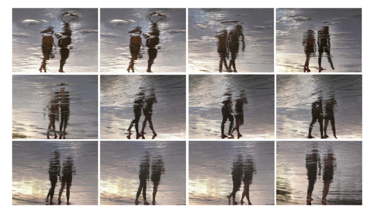 Elle ne regarde pas la mer tous ils la regardent tous ils rêvent de ces rêves vides qu’on fait devant la mer qui fait toujours ça de vider les têtes elle est debout devant la mer les mains couvrant ses seins nus elle dit de trop petites mains de trop petits seins elle n’attend rien d’être là elle ne sait plus comment elle est venue elle ne sait pas si elle pourra partir à la place elle dit je ne sais pas si je pourrais quitter elle a les yeux fermés face à la mer tous ils ont les yeux ouverts grands ouverts tous ils regardent la saison faire tomber dans la mer ses lumières de saison son roulis de saison leurs bouches aussi sont ouvertes comme s’il en sortait des mots pour dire mais ils ne disent rien sauf des fois ils disent ne va pas plus loin que le bord reste là où je te vois elle ne regarde pas la mer peut-être elle ne sait pas que la mer est là elle n’entend pas non plus les bruits ni de la mer ni de la ville derrière elle ni des oiseaux de mer et les gosses tous les gosses qui crient en entrant dans l’eau plus froide que l’air plus froide que leur peau elle ne regarde pas la mer elle a les yeux fermés elle dit peut-être que je suis regardée elle rit pour se moquer d’elle-même elle dit reste là où je peux te voir Deidi von Schaewen, "Reflections Biarritz", 2011. © Deidi von Schaewen.