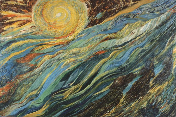 tu pars je le sens ce qu’il y a de toi en moi s’agite s’impatiente tu pars comme ça sans mots quels mots dire ? la patience n’est pas faite pour durer elle aime mourir vite elle aime courir vers ce n’est pas une marcheuse tu pars je le sens ma main tremble à l’idée que demain je ne pourrai plus je le sais pourtant il n’y a de bel asile que dans la mémoire et la mémoire à quoi ça ressemble ? disons une cité bombardée dans laquelle on poursuit machinalement notre marche on y marche oui mais si lentement si lentement qu’il est évident qu’on n’a pas survécu je le sais pourtant il n’est pas de mort que de mourir ©Sirje Runge, "Light I", 1979, huile sur toile. ©Art Museum of Estonia et Sirje Runge.